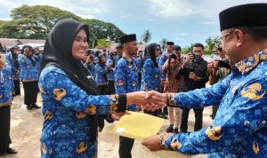 BULA. Kabupaten Seram Bagian Timur Provinsi Maluku – Penyerahan Surat Keputusan (SK) Pegawai Pemerintah dengan Perjanjian Kerja (PPPK) Paruh Waktu di lingkungan Pemerintah Kabupaten Kabupaten Seram Bagian Timur berlangsung khidmat di Lapangan Pancasila, Kota Bula, Kecamatan Bula, Kamis (19/2/2026).