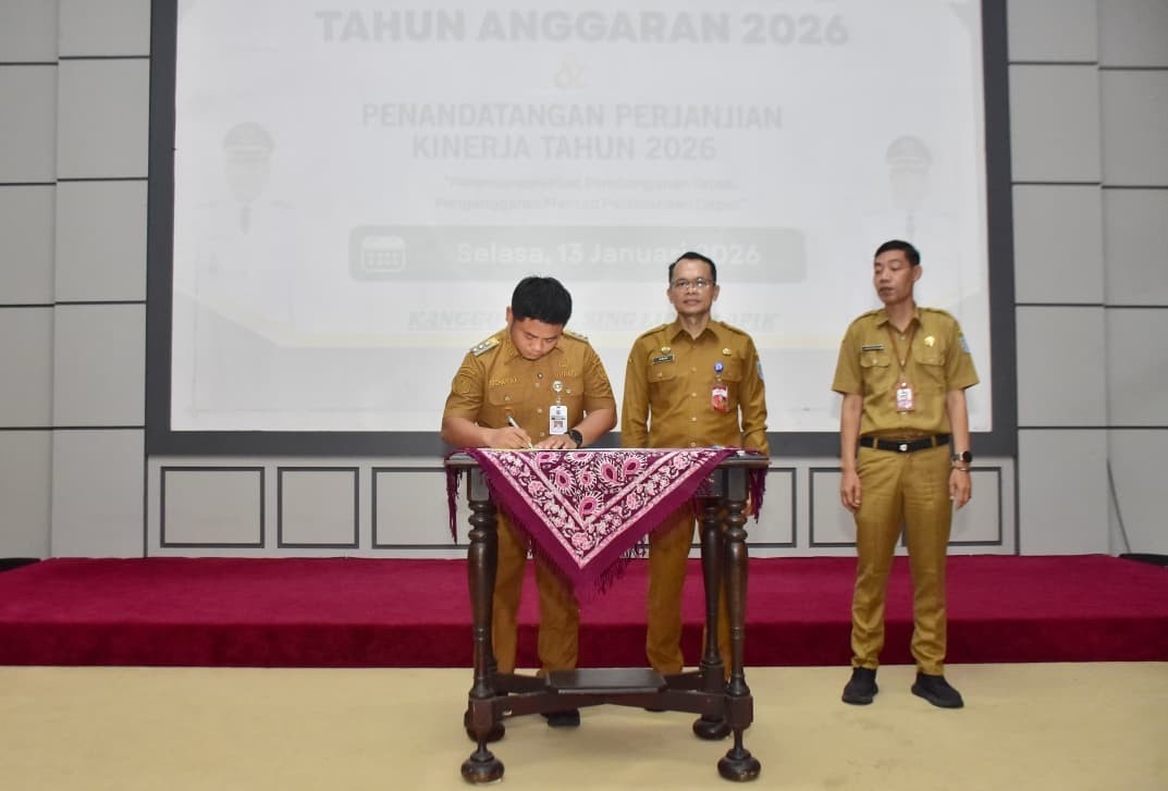 FORUMKOTA.ID | Slawi – Pemerintah Kabupaten Tegal secara resmi menyerahkan Dokumen Pelaksanaan Anggaran (DPA) dan melakukan penandatanganan Perjanjian Kinerja kepada Kepala Satuan Kerja Perangkat Daerah (SKPD) Tahun Anggaran 2026. Kegiatan ini berlangsung di Gedung Dadali, Komplek Pemerintah Kabupaten Tegal, Selasa (13/1/2026), dengan mengusung tema “Perencanaan Kuat, Pembangunan Tepat, Penganggaran Mantap, Pelaksanaan Cepat”.