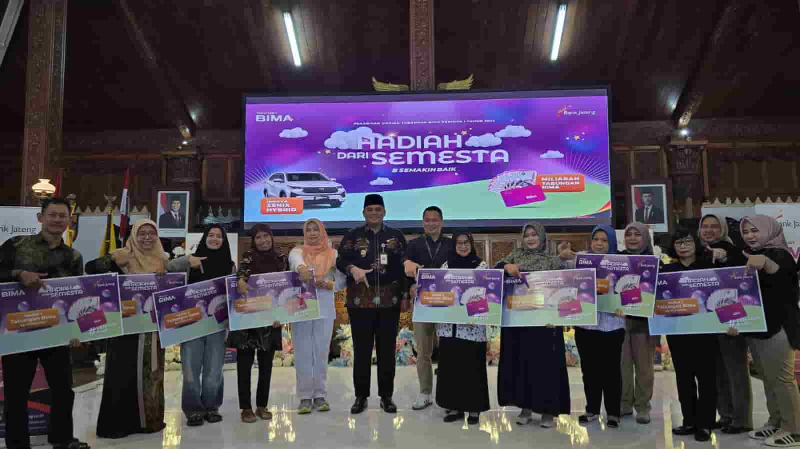 Forum Kota | JEPARA – Bank Jateng kembali menunjukkan komitmennya dalam memanjakan nasabah setia melalui acara Penarikan Undian Tabungan Bima Periode I Tahun 2026. Digelar di Pendopo R.A. Kartini pada Jumat (23/1/2026), acara bertema “Hadiah Dari Semesta #SemakinBaik” ini bertabur hadiah mulai dari saldo tabungan hingga mobil mewah.