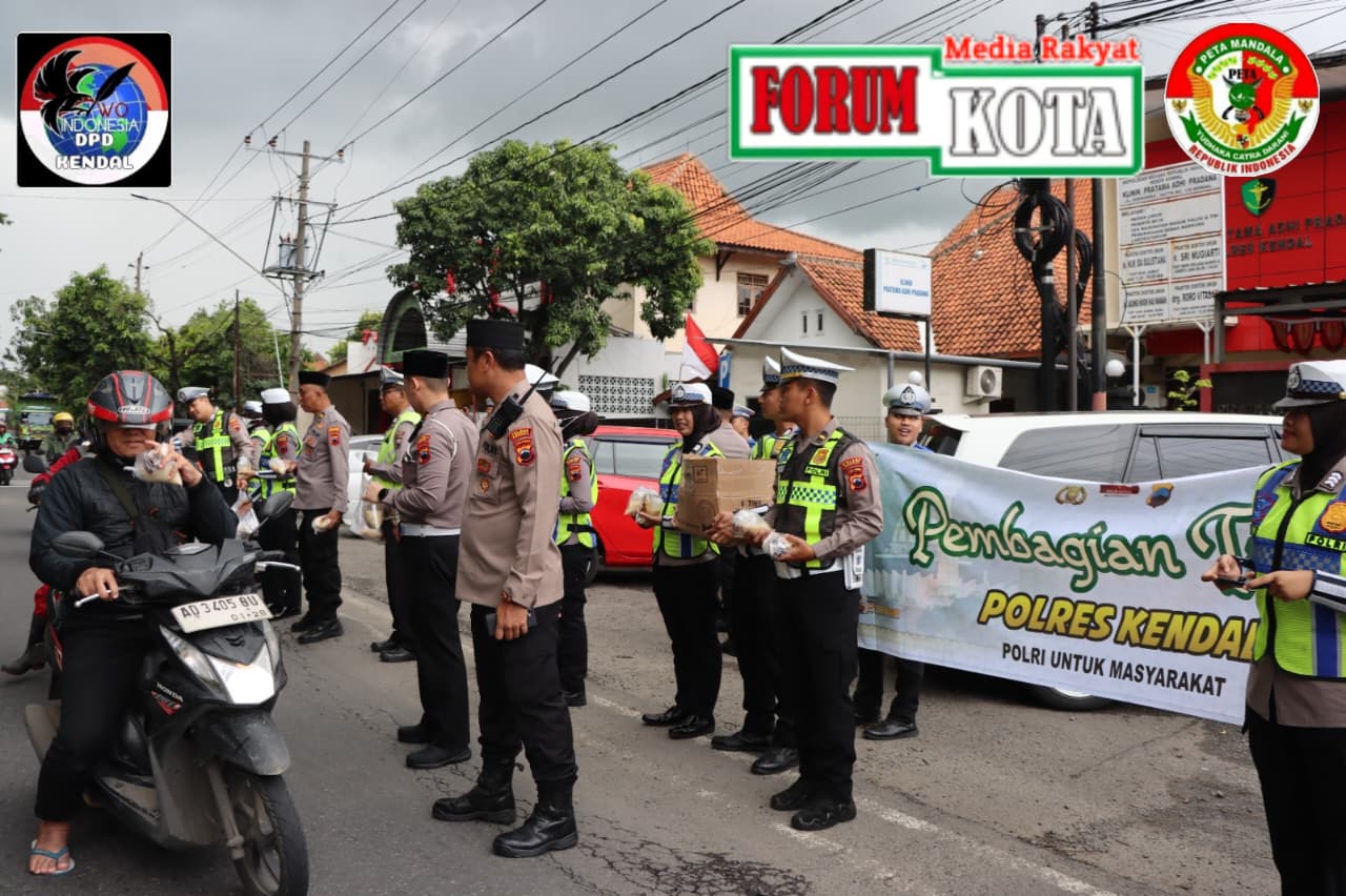 FORUM KOTA.ID ,KENDAL — Satuan Lalu Lintas (Satlantas) Polres Kendal membagikan takjil kepada masyarakat dan pengendara yang melintas di Jalan depan Mapolres Kendal, Kamis (19/2/2026) pukul 16.30 WIB hingga selesai. Kegiatan tersebut dilaksanakan dalam rangka hari pertama puasa bulan Ramadhan 1447 Hijriah.