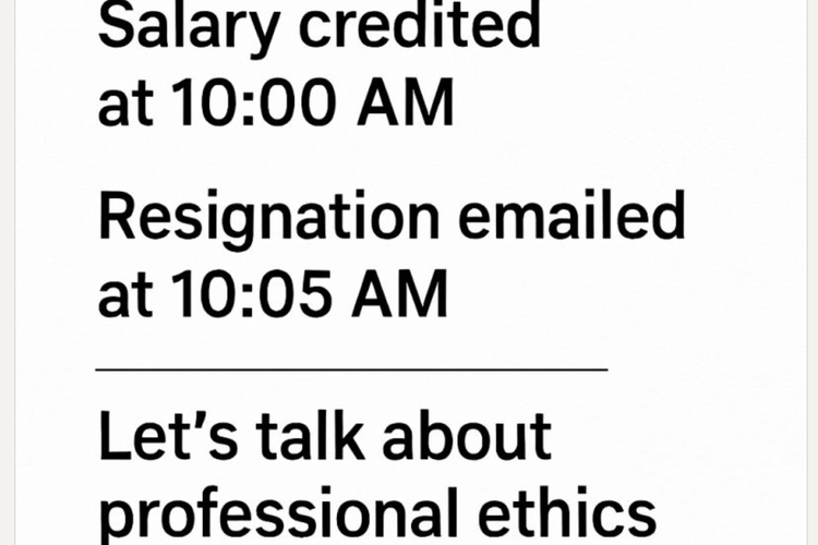 Priyavarshini menyampaikan, gaji karyawan tersebut masuk ke rekening pada pukul 10.00 pagi, namun hanya lima menit setelahnya, yaitu pukul 10.05 pagi, email pengunduran diri diterimanya.