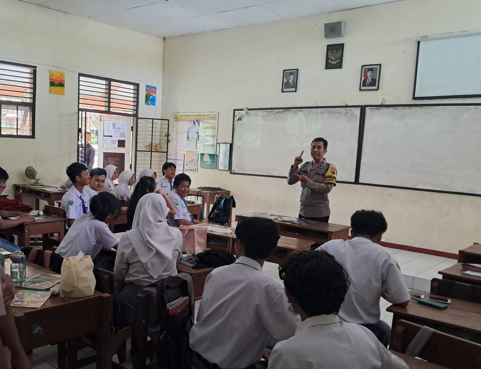 Dalam kegiatan tersebut, sebanyak 30 siswa kelas XII-4 mengikuti sosialisasi yang berisi penjelasan mengenai proses penerimaan anggota Polri Tahun Anggaran 2026, mulai dari persyaratan pendaftaran, tahapan seleksi, hingga prinsip rekrutmen Polri yang bersih, transparan, akuntabel, dan humanis (BETAH).