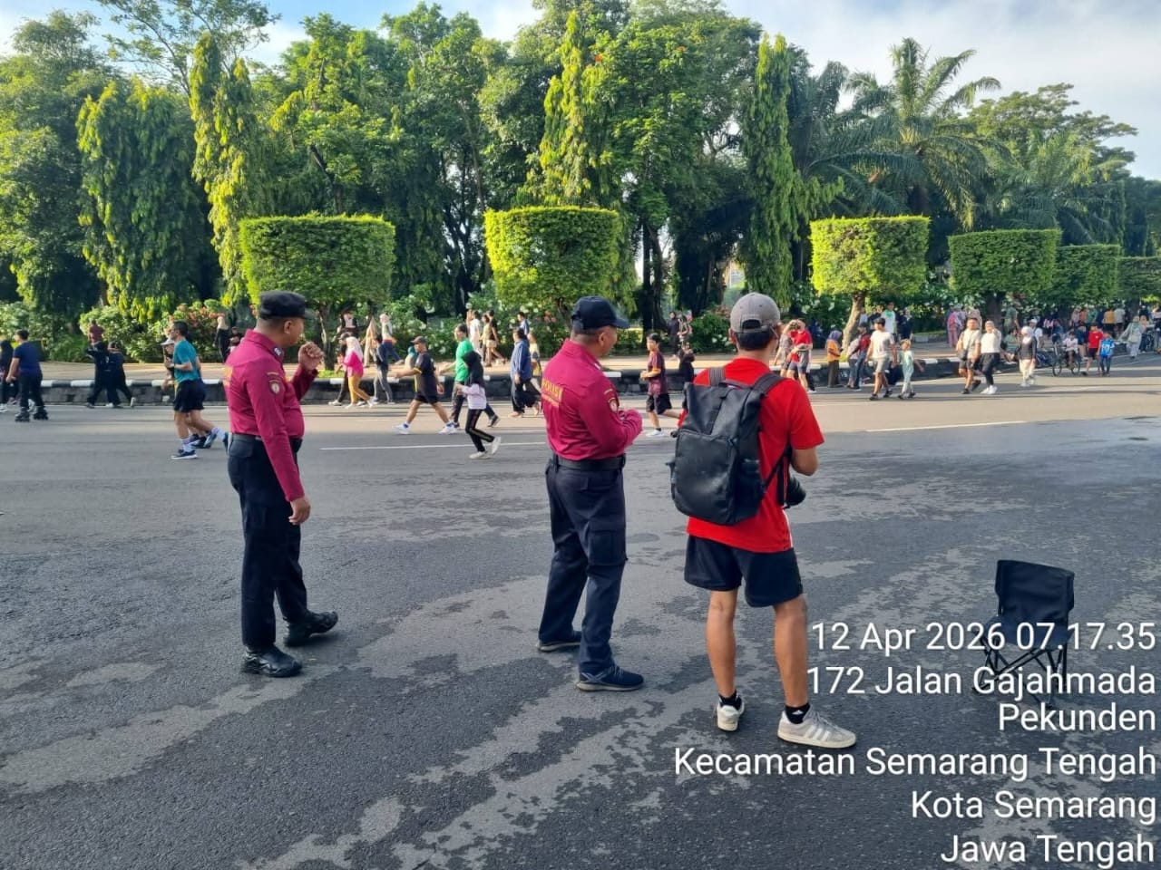 Forumkota.id _ Polda Jateng, Kota Semarang | Suasana pagi di kawasan Lapangan Pancasila Simpang Lima, Kota Semarang, Minggu (12/4/2026), tampak semarak. Ribuan warga memanfaatkan momen Car Free Day (CFD) untuk berolahraga, bersantai, hingga bercengkerama bersama keluarga. Di tengah aktivitas itu, kehadiran personel Direktorat Pengamanan Objek Vital (Ditpamobvit) Polda Jawa Tengah menjadi bagian penting yang menjaga kenyamanan tetap terjaga.