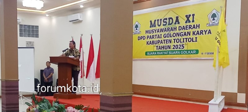 Musyawarah Daerah (Musda) XI Dewan Pimpinan Daerah (DPD) Partai Golongan Karya Kabupaten Tolitoli resmi digelar pada 16–17 Desember 2025 di Aula Hotel Mitra Utama Tolitoli. Kegiatan ini menjadi forum tertinggi partai di tingkat kabupaten dalam rangka konsolidasi organisasi, evaluasi kepengurusan, serta penentuan arah kebijakan dan kepemimpinan Partai Golkar Tolitoli ke depan.