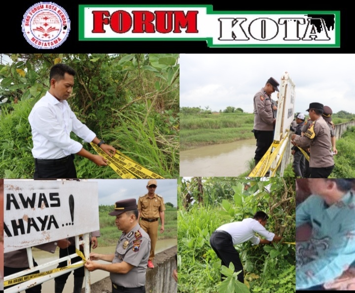KENDAL ,FORUM KOTA.ID— Polsek Patebon bersama Pemerintah Desa Lanji memasang garis police line dan papan peringatan “Awas Bahaya” di tanggul Kali Bodri, Dukuh Pilang, Desa Lanji, Kecamatan Patebon, Kabupaten Kendal, Senin (26/1/2026). Langkah ini dilakukan sebagai upaya pengamanan lokasi tanggul yang terkikis dan dinilai rawan jebol akibat tingginya debit air sungai.