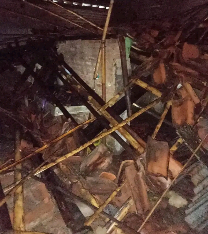 Kondisi cuaca ekstrem menyebabkan struktur rumah beserta bagian dapur milik warga tidak mampu bertahan hingga akhirnya roboh.