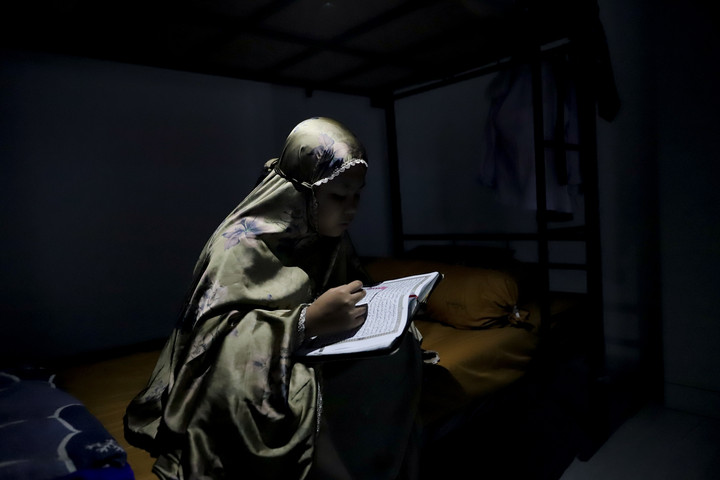 Kamila sering memanfaatkan jeda mengaji untuk menatap foto bersama ibunya, cara sederhana melepas rindu yang datang diam-diam.