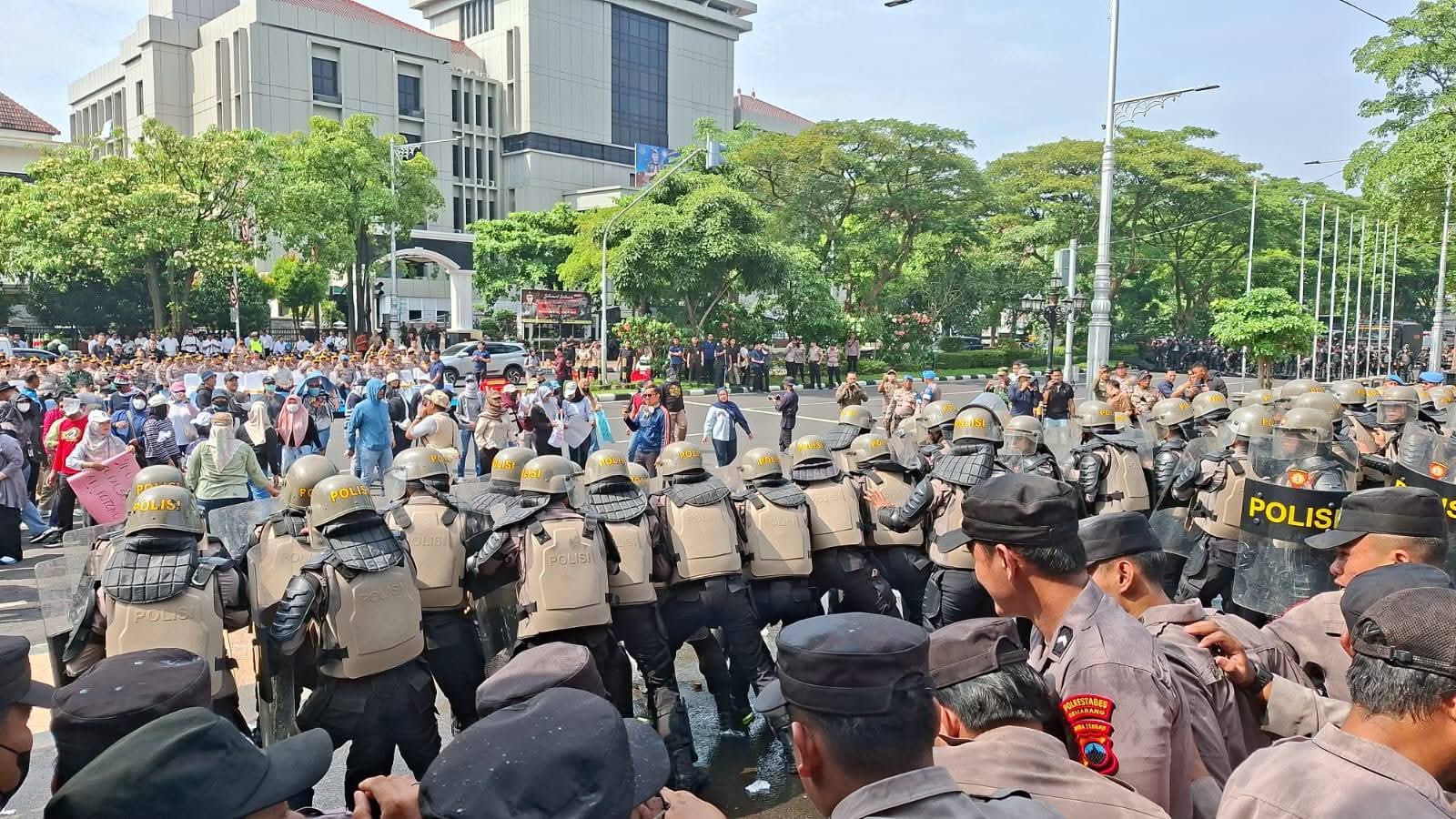 Namun, dinamika berubah ketika sebagian massa mulai terdorong emosi, memicu aksi dorong dorongan dan mengabaikan imbauan petugas. Ketegangan mencapai puncaknya ketika massa mulai bertindak anarkis dengan melakukan pembakaran dan pelemparan.