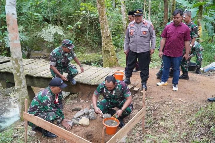 Rangkaian kegiatan berlangsung tertib, diawali dengan pembukaan, doa, sambutan, pembagian sembako, hingga peletakan batu pertama sebagai simbol dimulainya pembangunan. Kegiatan ini mencerminkan sinergi antara TNI, pemerintah daerah, dan masyarakat dalam mendukung pembangunan wilayah.