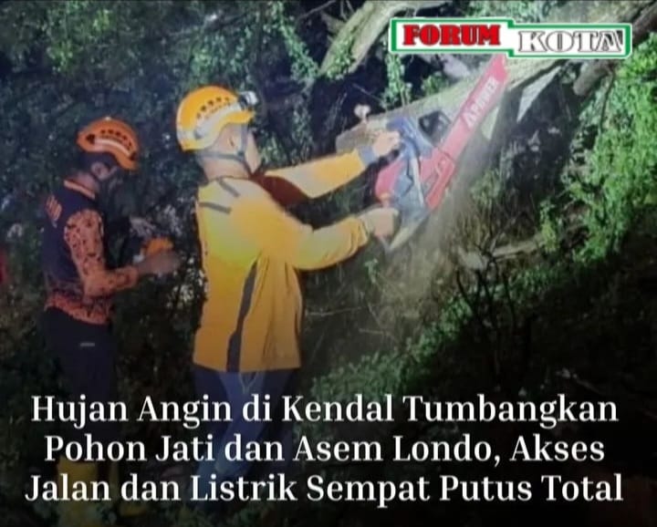 KENDAL, FORUM KOTA.ID – Hujan dengan intensitas ringan hingga lebat yang disertai angin kencang melanda Kabupaten Kendal pada Selasa malam hingga Rabu dini hari, mengakibatkan dua kejadian pohon tumbang di lokasi berbeda. Peristiwa tersebut terjadi pada Rabu (14/1/2026) sekitar pukul 01.49 WIB dan sempat menutup akses jalan serta menimpa jaringan listrik.