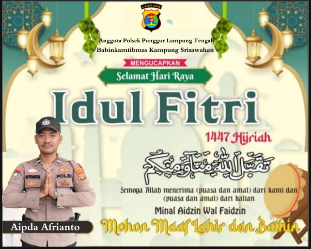 Anggota Polsek Punggur Babinkamtibmas Kampung Srisawahan Mengucapkan Selamat Hari Raya Idul Fitri, mohon maaf lahir dan batin