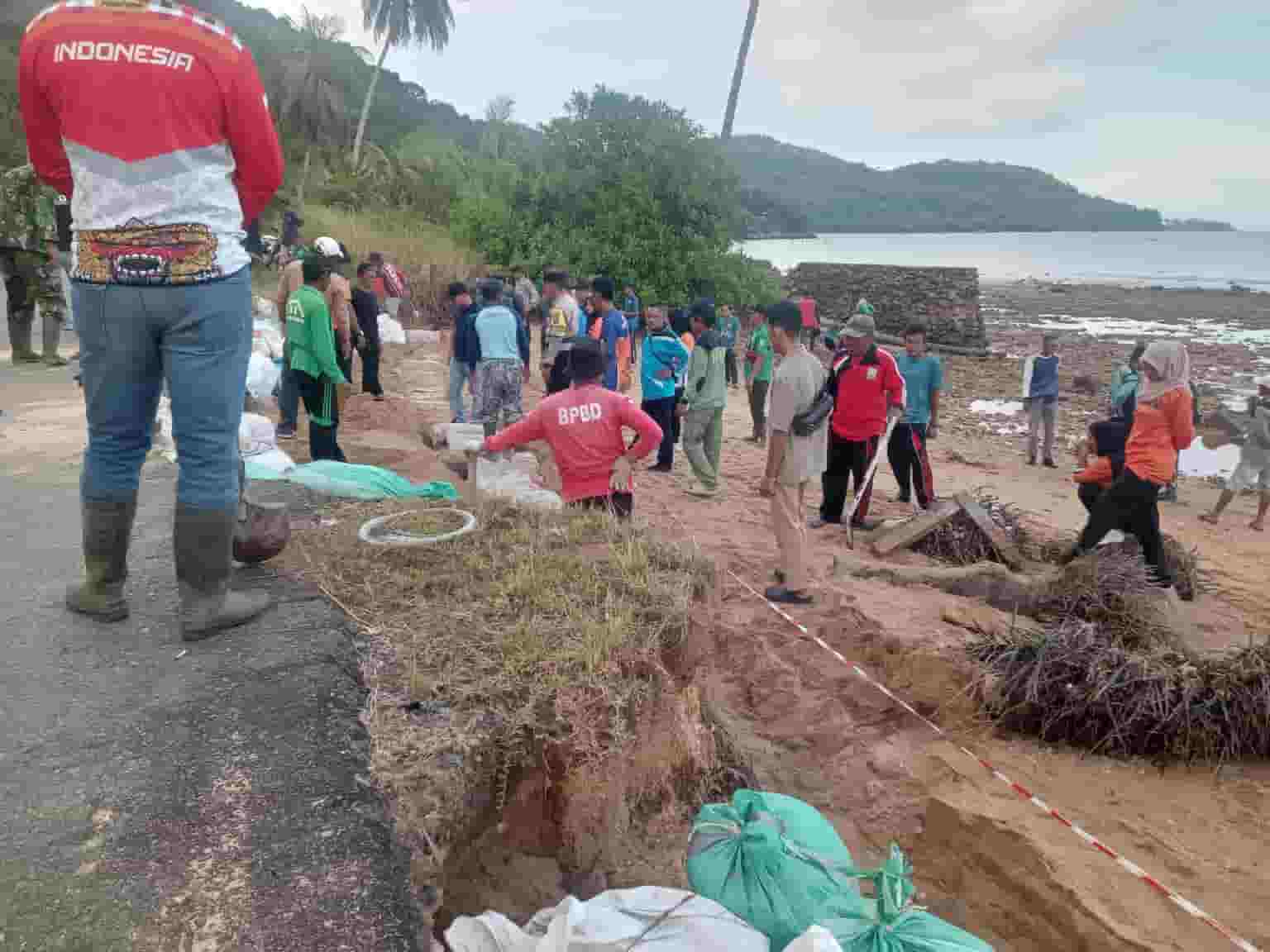 Para peserta gotong royong melakukan sejumlah tindakan darurat seperti penimbunan, perataan tanah, pemasangan semen beku sebagai penahan sementara, serta penimbunan pasir. Upaya tersebut bertujuan untuk menghambat laju abrasi dan memastikan kendaraan tetap dapat melintas dengan aman.