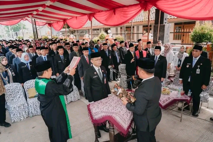 PAGERBARANG,|FORUMKOTA.ID __ Pemerintah Kabupaten Tegal melaksanakan pengambilan sumpah/janji jabatan dan pelantikan ratusan Aparatur Sipil Negara (ASN) dari berbagai jenjang jabatan, Jumat (9/1/2026). Prosesi pelantikan berlangsung tidak biasa karena digelar di ruang terbuka, tepatnya di ruas Jalan Jatibarang – Pagerbarang, yang sekaligus diresmikan usai rampung diperbaiki.