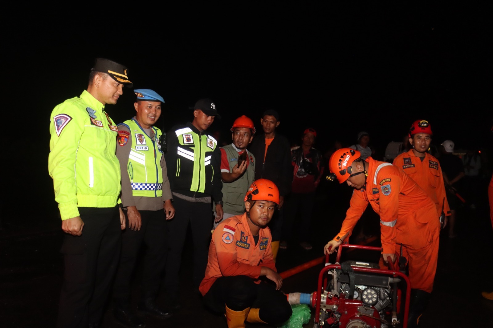 Menanggapi situasi tersebut, petugas siaga tanggap bencana Polres Tegal bersama unsur TNI, BPBD, dan Dinas Pemadam Kebakaran Kabupaten Tegal dan Kabupaten Brebes segera melakukan langkah cepat penanganan.