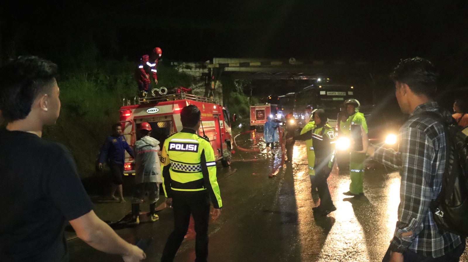 Berdasarkan laporan di lapangan, hujan lebat telah turun sejak sore hari sekitar pukul 16.00 WIB dengan intensitas tinggi dan durasi cukup lama. Akibatnya, pada pukul 18.30 WIB air hujan yang masuk ke area underpass ditambah dengan luapan sungai di sekitar lokasi menyebabkan genangan air cukup tinggi hingga menutup badan jalan underpass.