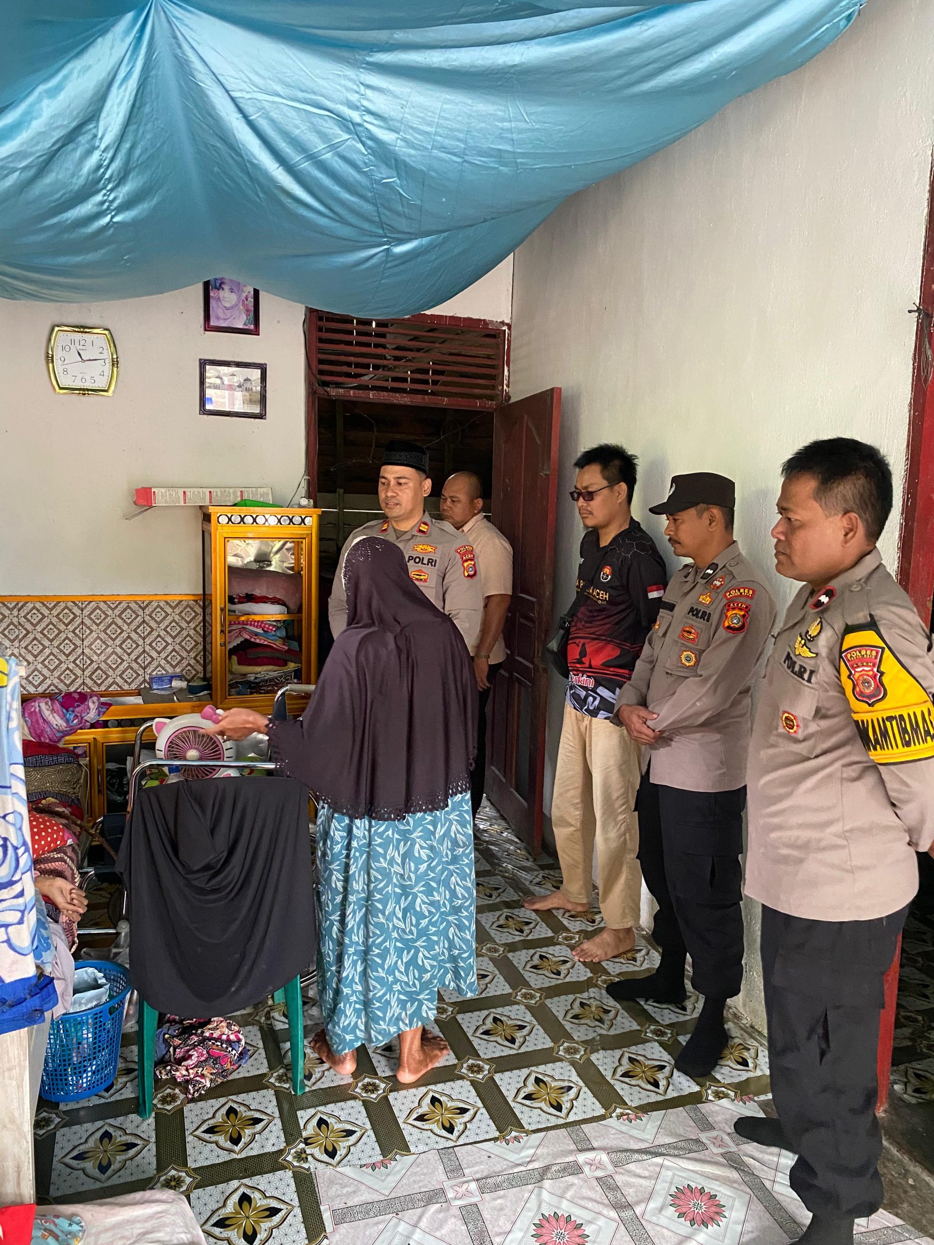 Forum Kota | Suka Makmue- Kapolsek Darul Makmur Iptu Ade Haidir, S.H beserta personel melaksanakan kegiatan menjenguk warga sakit menahun akibat lumpuh atas nama Evitanti sang ibu, Mismawati tak kuasa tahan tangis saat rombangan Kapolsek tiba di kediamannya di Desa Pulo Tengoh Kecamatan Darul Makmur Kabupaten Nagan Raya, Kamis, (30/10/2025)