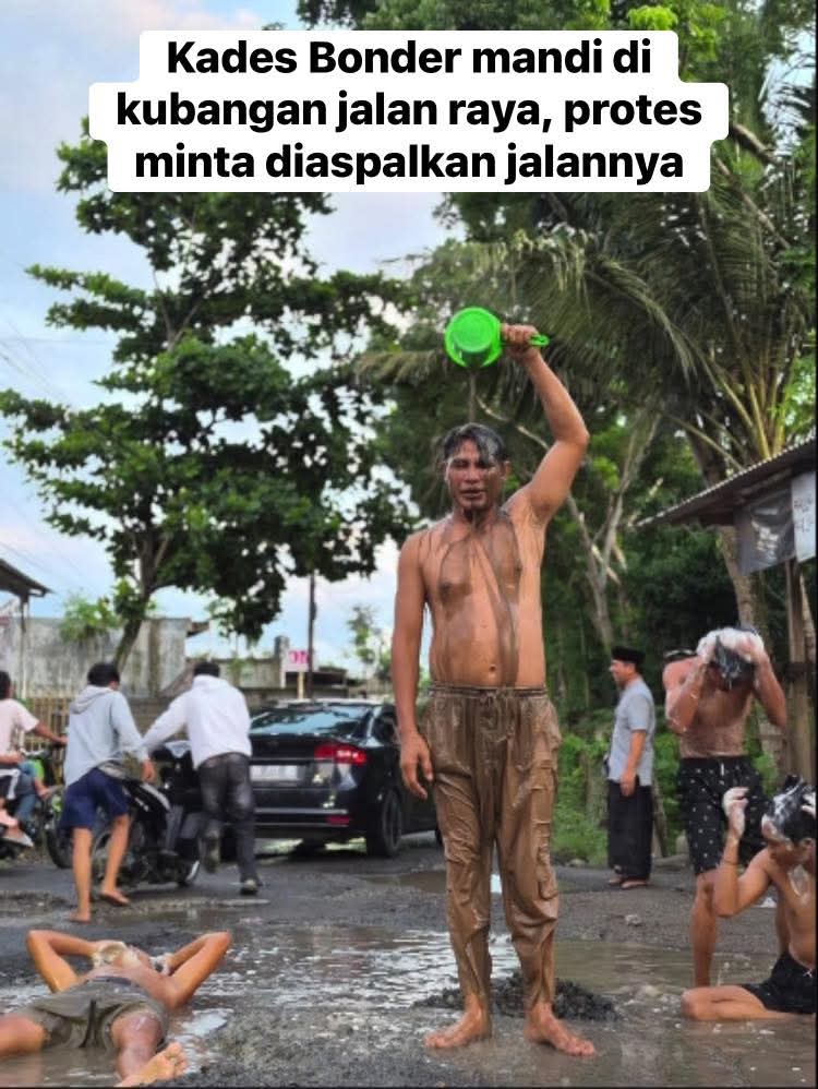 Aksi seorang kepala desa yang terpaksa “mandi” di tengah jalan raya Bondir, Praya Barat, Lombok Tengah, pada hari ini (22 Desember 2025) menjadi sorotan warga setempat. Hujan deras yang turun sejak pagi hari membuat lubang-lubang besar di jalan tersebut terisi air hingga ketinggian lutut, menjadikannya seperti genangan yang tidak bisa dilewati tanpa membasahi tubuh. Kepala Desa Bondir, I Nyoman Sudarma, yang sedang meninjau kondisi jalan setelah hujan, tidak sengaja terjatuh ke dalam lubang yang terisi air, membuat seluruh baju dan celananya basah kuyup.