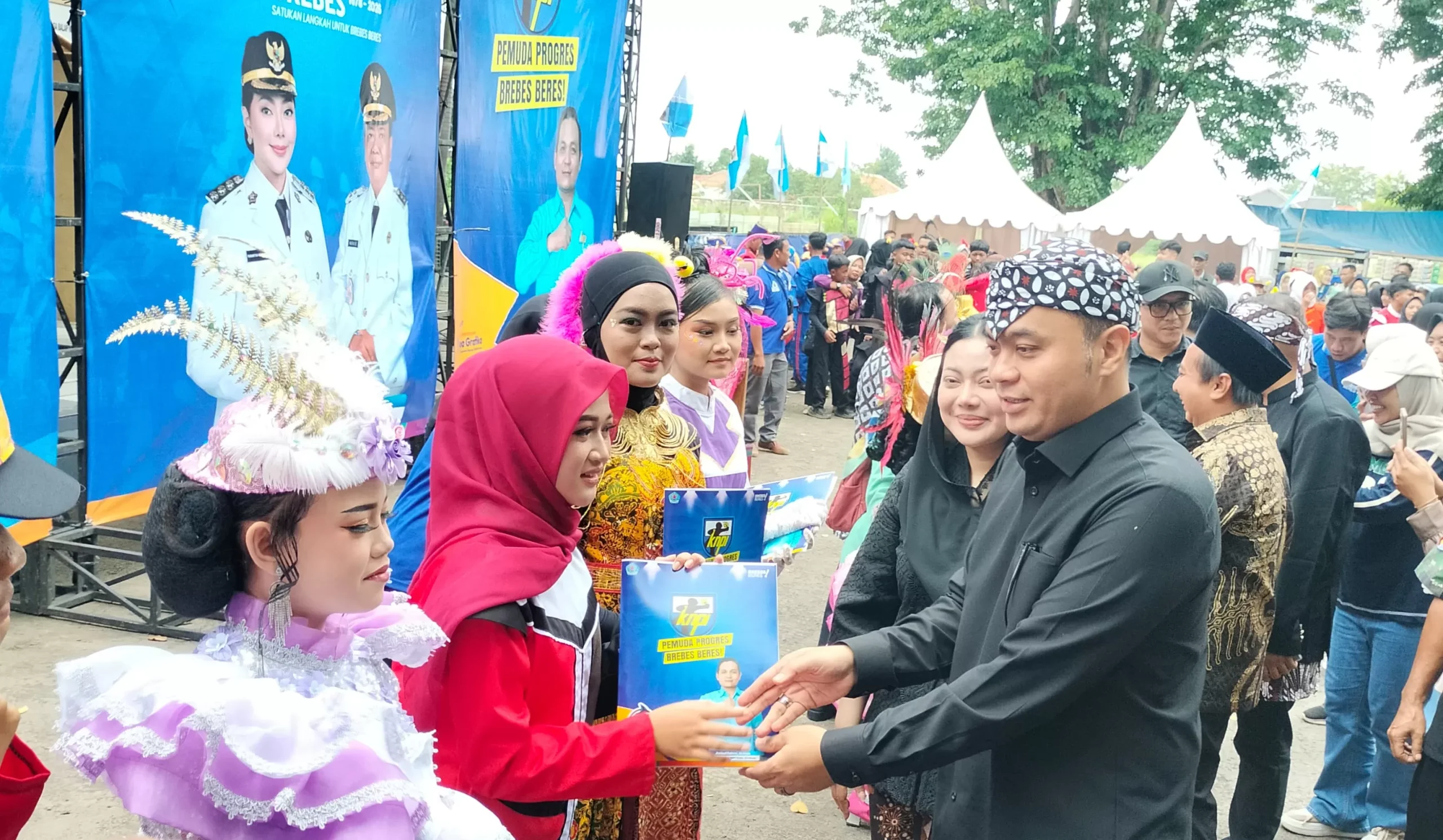 Bupati Brebes Paramitha Widya Kusuma, didampingi Ketua Tim Penggerak PKK Kabupaten Brebes Ahmad Saeful Ansori, menyerahkan piala dan hadiah kepada para pemenang. Paramitha mengapresiasi DPD KNPI Kabupaten Brebes beserta para guru, pelatih, dan orang tua yang telah mendukung terselenggaranya kompetisi.