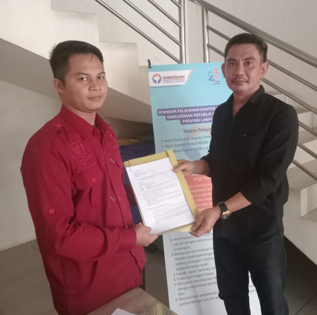 FORUM KOTA | METRO — Pemerhati kebijakan publik Hendra Apriyanes pada Rabu, 18 Februari 2026, secara resmi menyerahkan fisik laporan dugaan maladministrasi terkait penyelenggaraan pemerintahan oleh Walikota Metro, Bambang Imam Santoso, kepada Ombudsman Republik Indonesia Perwakilan Provinsi Lampung.