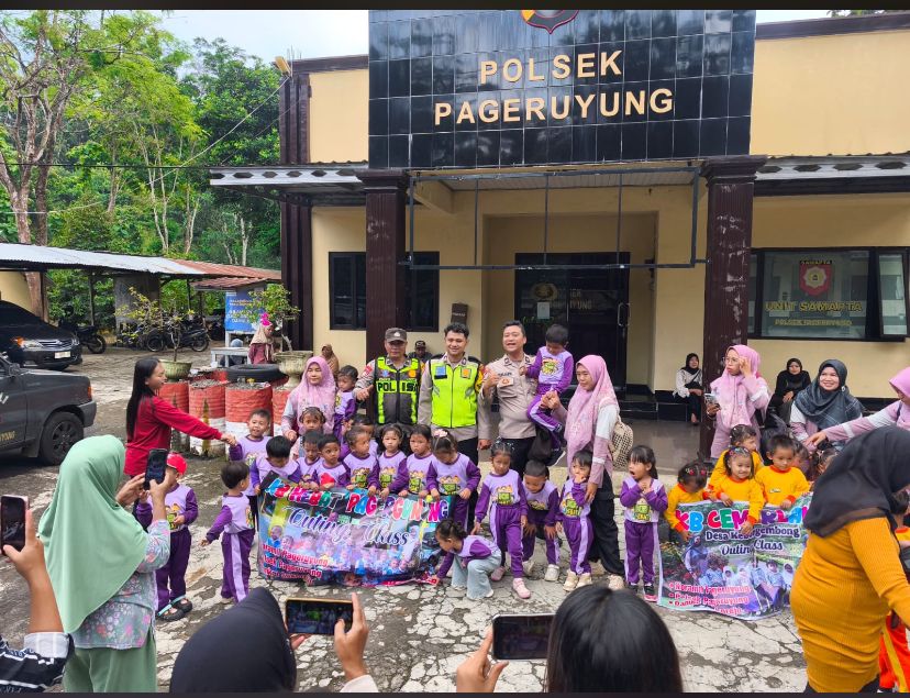 KENDAL | FORUMKOTA.ID __ MaPolsek Pageruyung Kendal melaksanakan kegiatan pembinaan Menerima Paud ( KB ) Kelompok Bermain diPolsek Pageruyung Kecamatan kecamatan. Pageruyung Kabupaten Kendal .Kegiatan ini difokuskan pada pentingnya bela negara dan cinta tanah air bagi generasi muda, dengan landasan utama kedisiplinan dan semangat belajar.