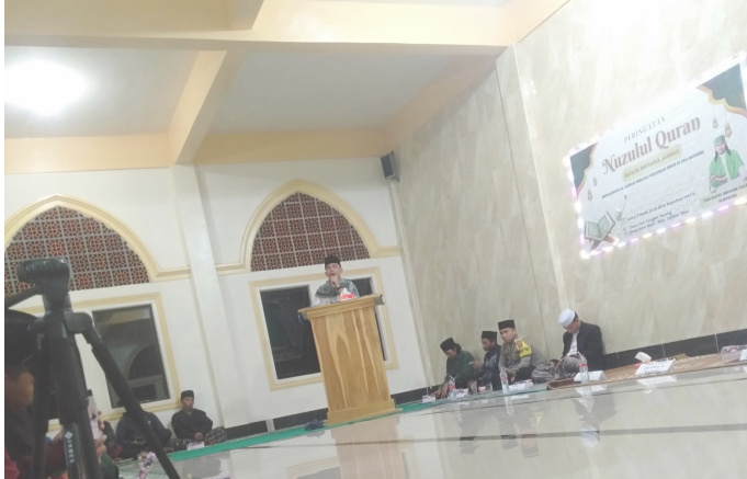 Acara yang digelar di kompleks Masjid Miftahul Jannah dimulai sejak pukul 21.30 WIB dengan acara pembukaan oleh Kepala Desa Jeruk Manis, Bapak NASIPUDIN S.E. Dalam sambutannya, beliau mengaitkan pesan Nuzulul Quran dengan upaya pembangunan desa yang berlandaskan nilai-nilai kebaikan dan kerja sama. “Turunnya Al-Qur’an mengajarkan kita tentang pentingnya kesatuan, kerja keras, dan kepedulian sesama – nilai-nilai yang menjadi pondasi kuat untuk mengembangkan potensi Desa Jeruk Manis. Kita memiliki keindahan alam yang bisa dioptimalkan sebagai destinasi wisata alam, serta produk hasil tangan dan pertanian lokal yang layak menjadi daya tarik UMKM kita. Mari kita jadikan Al-Qur’an sebagai kompas hidup dan panduan dalam membangun desa yang sejahtera, makmur, dan penuh berkah,” ujarnya.