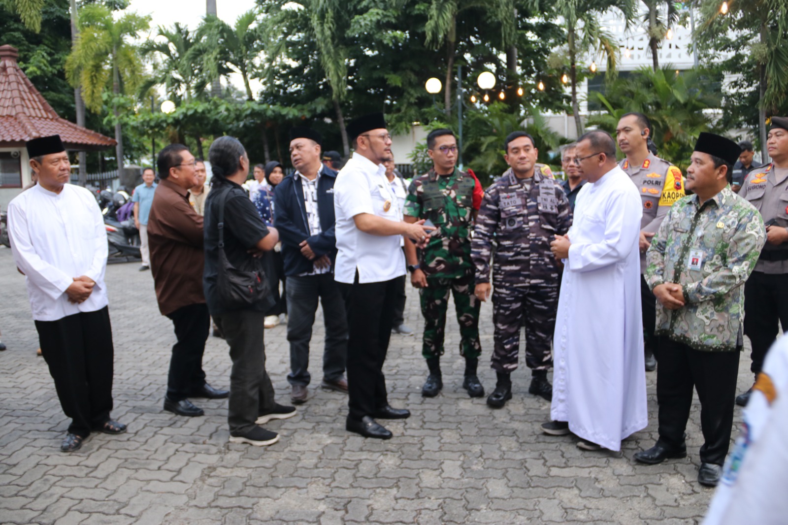 Rombongan Forkopimda dipimpin langsung oleh Wali Kota Tegal, Dedy Yon Supriyono, dan diikuti oleh Kapolres Tegal Kota, Komandan Kodim 0712/Tegal, Komandan Lanal Tegal, perwakilan anggota Forkopimda, Ketua MUI Kota Tegal, Ketua FKUB Kota Tegal, serta Kepala OPD terkait lainnya.
