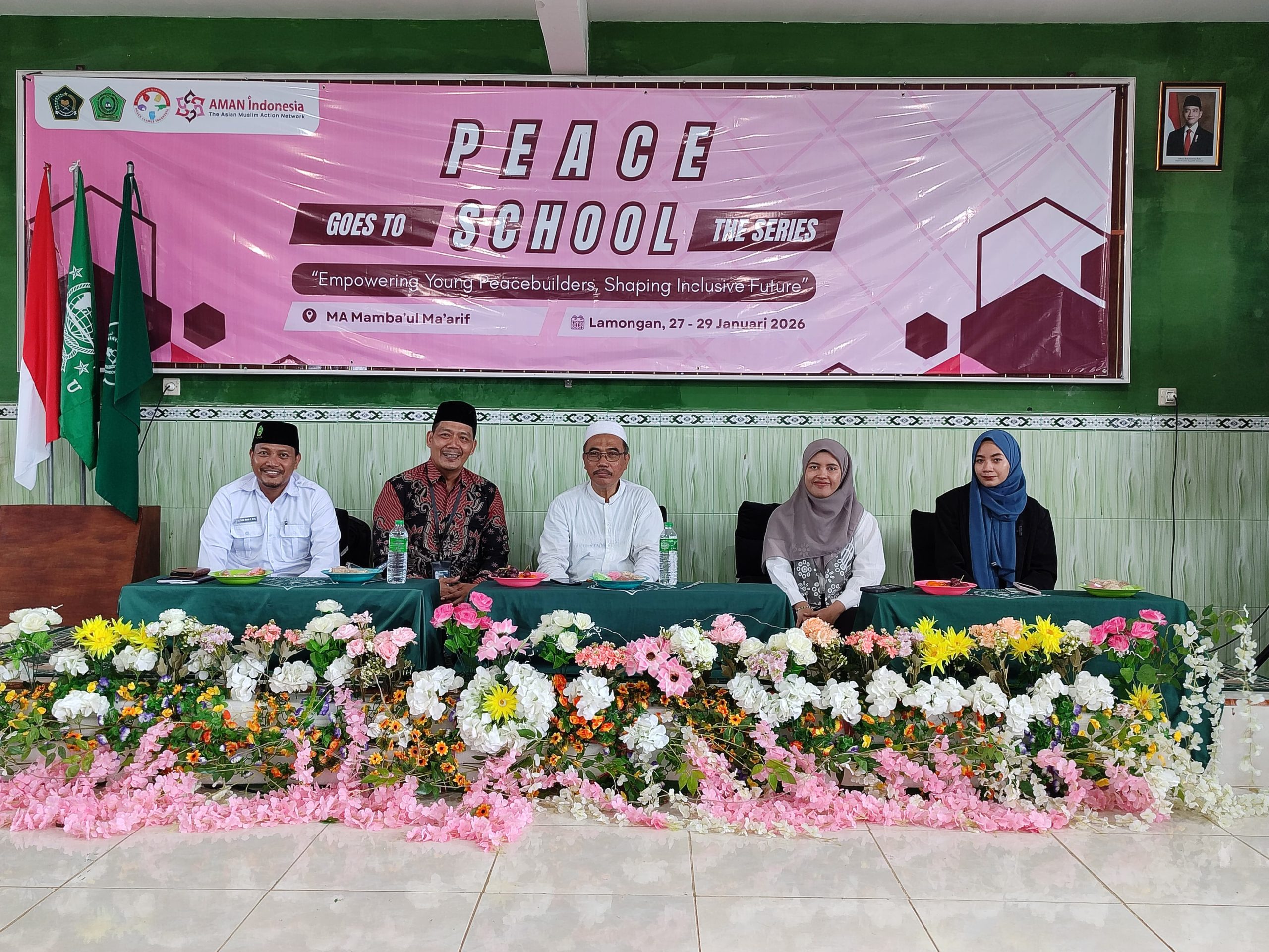 Forumkota.id//Lamongan – Program Peace Goes to School The Series (PGS), resmi digelar di Madrasah Aliyah Mamba’ul Ma’arif (MA MaMa) selama tiga hari, mulai Selasa hingga Kamis, 27–29 Januari 2026. Kegiatan ini membawa tema “Empowering Young Peacebuilders, Shaping Inclusive Future”, bertujuan menanamkan nilai perdamaian, kesetaraan, kepemimpinan, serta membangun karakter pelajar sebagai agen perubahan di lingkungan sekolah dan masyarakat.