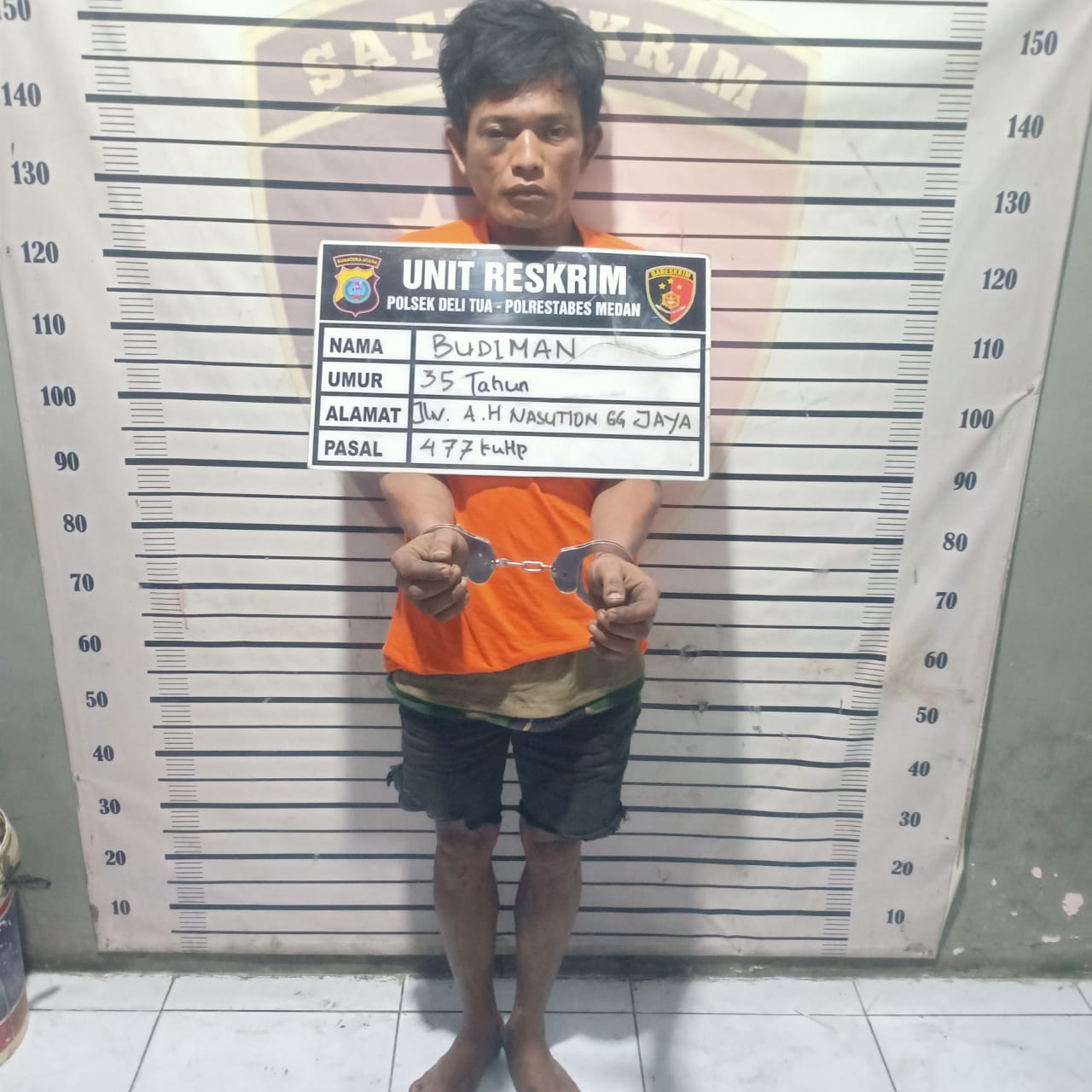 Kapolsek Deli Tua, Kompol PS Simbolon, S.H melalui Kanit Reskrim AKP Hermawan, SH mengonfirmasi penangkapan pelaku yang merupakan warga Jalan AH Nasution ini diamankan sesaat setelah melancarkan aksinya di pagi hari sekitar pukul 09.55 WIB.