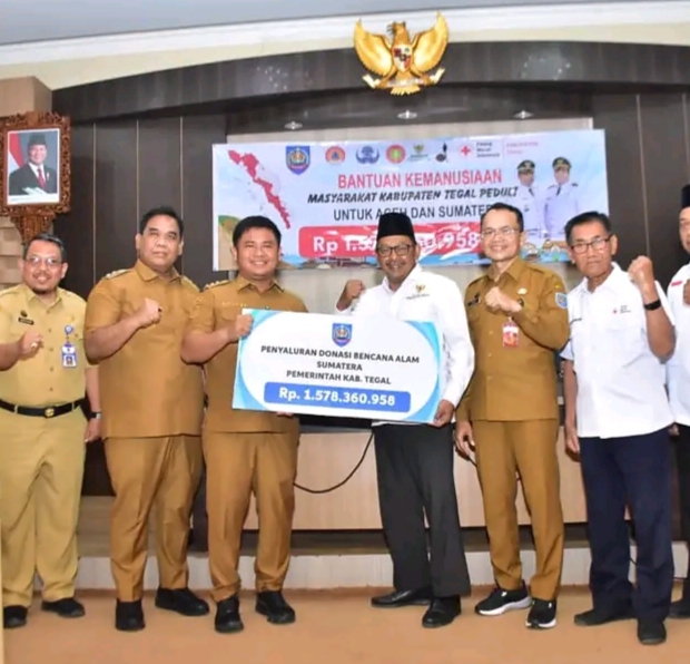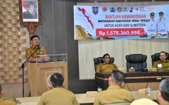 FORUMKOTA.ID | Slawi – Pemerintah Kabupaten Tegal menunjukkan komitmen kepedulian dan solidaritas kemanusiaan dengan menghimpun serta menyerahkan bantuan donasi bagi korban bencana alam di Aceh, Sumatera Utara, dan Sumatera Barat. Hingga 3 Januari 2026, total dana yang berhasil dikumpulkan mencapai Rp1.578.360.958,00.