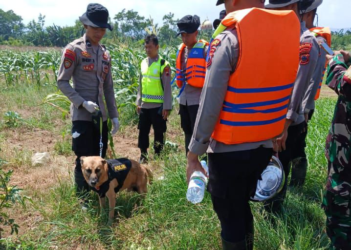 Selain pencarian melalui jalur air, tim juga melakukan penyisiran darat. Tim K9 Polres Kendal dengan anjing pelacak dikerahkan menyusuri tanggul sungai hingga area persawahan dan lahan pertanian di sekitar lokasi kejadian.