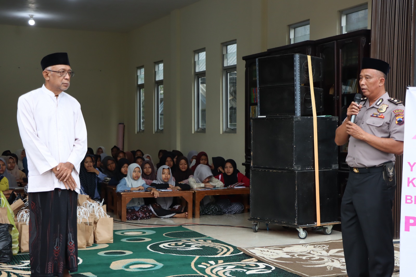 Kegiatan berlangsung di lingkungan Ponpes Al-Hidayah dan dihadiri Pejabat Utama (PJU) Polres Kendal, Kapolsek Kota Kendal IPTU Sanhaji, S.H., jajaran perwira dan anggota Polres serta Polsek Kota Kendal, Bhayangkari Cabang Kendal, komunitas ojek online, serta pengasuh ponpes Kyai Masruh bersama sekitar 250 santri.