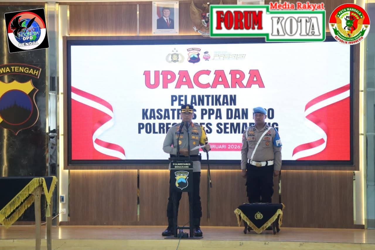 FORUM KOTA.ID,Semarang – Polrestabes Semarang menggelar upacara pelantikan Kepala Satuan Reserse Perlindungan Perempuan dan Anak serta Pemberantasan Perdagangan Orang (Kasatres PPA dan PPO) pada Kamis (19/2/2026) pukul 09.15 WIB di Aula Lantai 3 Gedung B Polrestabes Semarang.