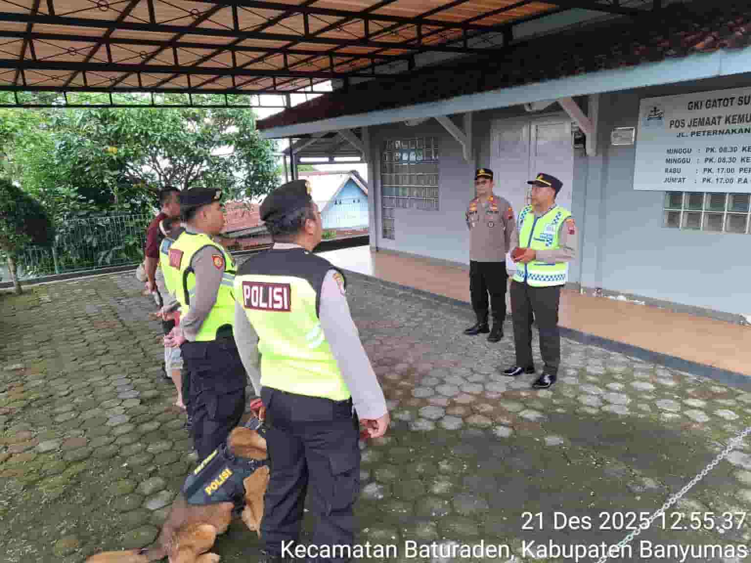 BANYUMAS | FORUMKOTA.ID __ Guna memberikan rasa aman dan menjamin kelancaran pelaksanaan ibadah Natal, Polsek Baturraden Polresta Banyumas melaksanakan kegiatan sterilisasi di Gereja Kristen Indonesia (GKI) Desa Kemutug Lor, Minggu (21/12/2025).