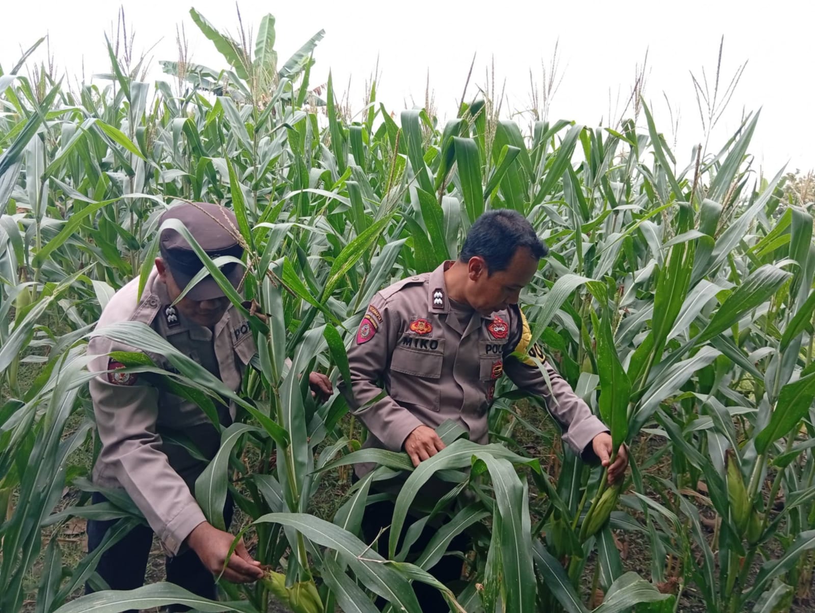 Wujud nyata komitmen itu terlihat saat anggota Polsek Kenduruan, AIPTU Khanif Irawan, S.H., bersama AIPTU Widiatmiko turun langsung ke lahan pertanian milik warga. Keduanya melakukan pengecekan kondisi tanaman jagung guna memastikan pertumbuhan tanaman berjalan optimal serta menyerap aspirasi dan kendala yang dihadapi petani.