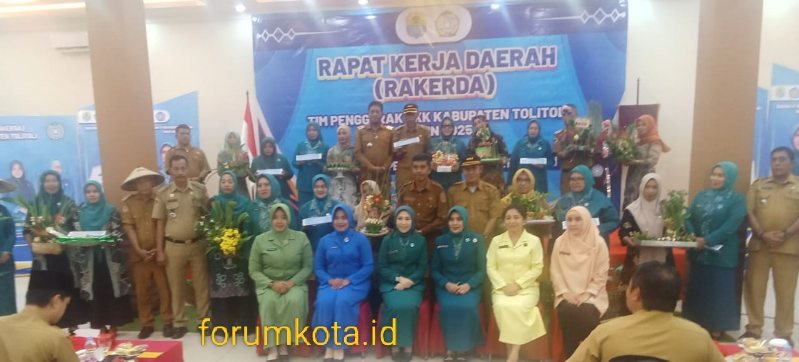 FORUMKOTA.ID SULTENG | Tolitoli, — Pemerintah Kabupaten Tolitoli menggelar Rapat Kerja Daerah (Rakerda) Tim Penggerak Pemberdayaan dan Kesejahteraan Keluarga (TP PKK) Tahun 2025 yang dirangkaikan dengan Pelantikan Tim Pembina Posyandu Kabupaten Tolitoli Masa Bakti 2025–2030, Senin (15/12/2025), di Hotel Mitra Utama Tolitoli.
