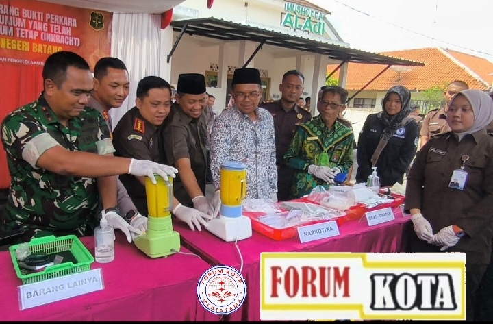 FORUMKOTA.ID | BATANG __ Narkotika jenis sabu dan ganja senilai ratusan juta, dimusnahkan oleh Kejaksaan Negeri (Kejari) Batang dengan cara diblender, Kamis 11 Desember 2025 di halaman Kejari setempat.
