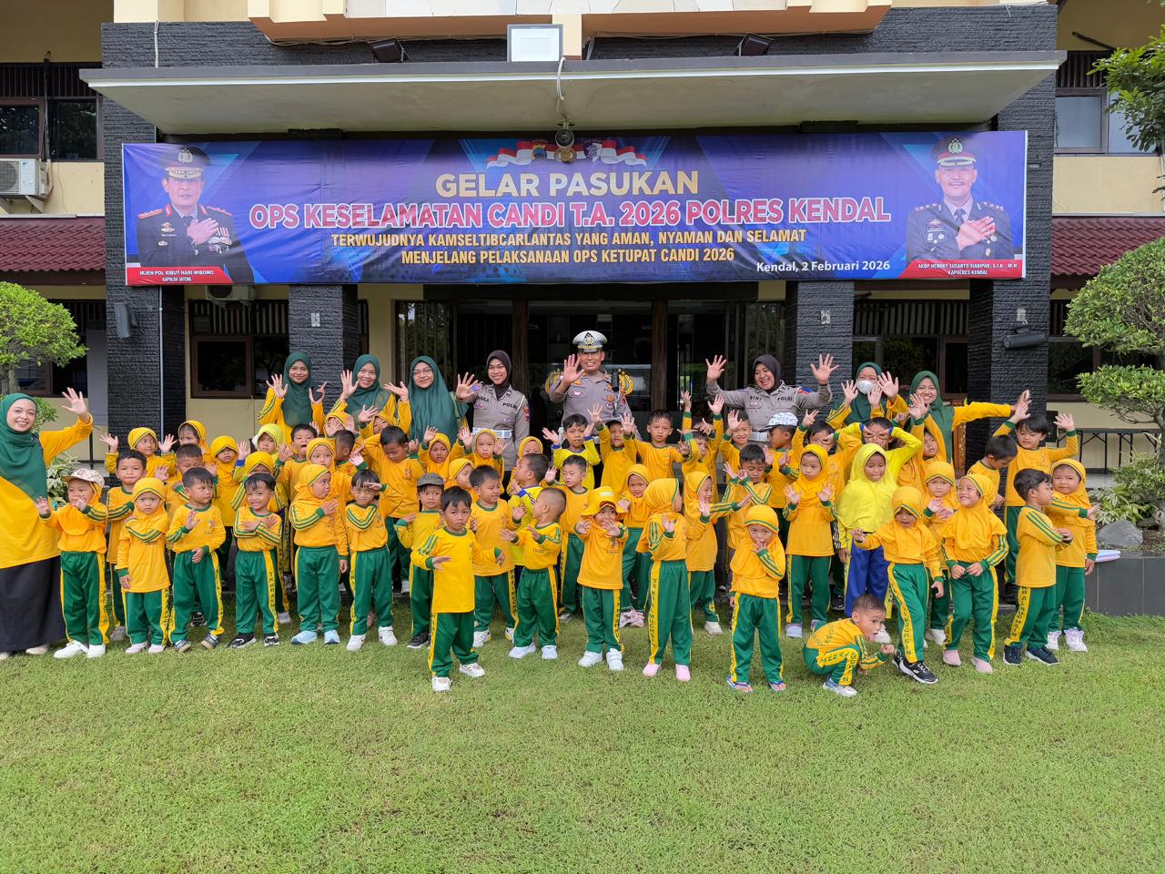 KENDAL,FORUM KOTA.ID – Suasana Lapangan Indoor Polres Kendal tampak berbeda pada Selasa pagi (3/2/2026). Gelak tawa dan antusiasme puluhan siswa dari TK-KB Yayasan Al-Muchsin, Desa Penanggulan, Kecamatan Pegandon, memadati area tersebut dalam rangka kegiatan Sosialisasi Ops Keselamatan Candi 2026 sekaligus program Polisi Sahabat Anak (Polsanak).