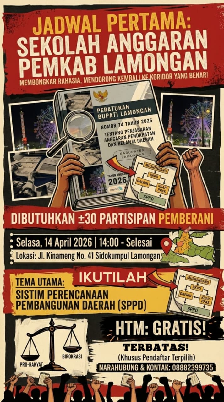 Forumkota.id__Lamongan, 12 April 2026 – Sebuah kegiatan edukatif bertajuk “Sekolah Anggaran Pemkab Lamongan” akan segera digelar untuk membuka wawasan masyarakat mengenai tata kelola keuangan daerah. Acara ini dirancang untuk mengupas tuntas mekanisme perencanaan pembangunan, dengan tujuan agar masyarakat lebih paham dan dapat berpartisipasi aktif dalam pengawasan anggaran.