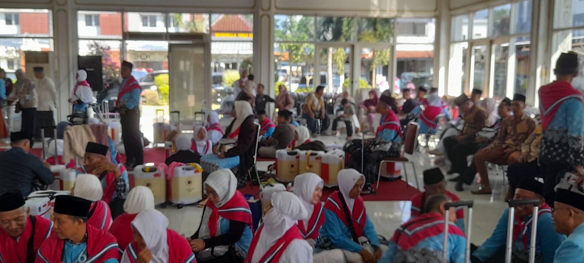 Ratusan jamaah haji yang diberangkatkan tampak antusias meski tak sedikit yang menitikkan air mata saat berpamitan dengan keluarga. Doa dan harapan pun mengiringi keberangkatan mereka menuju embarkasi sebelum melanjutkan perjalanan ke Tanah Suci.