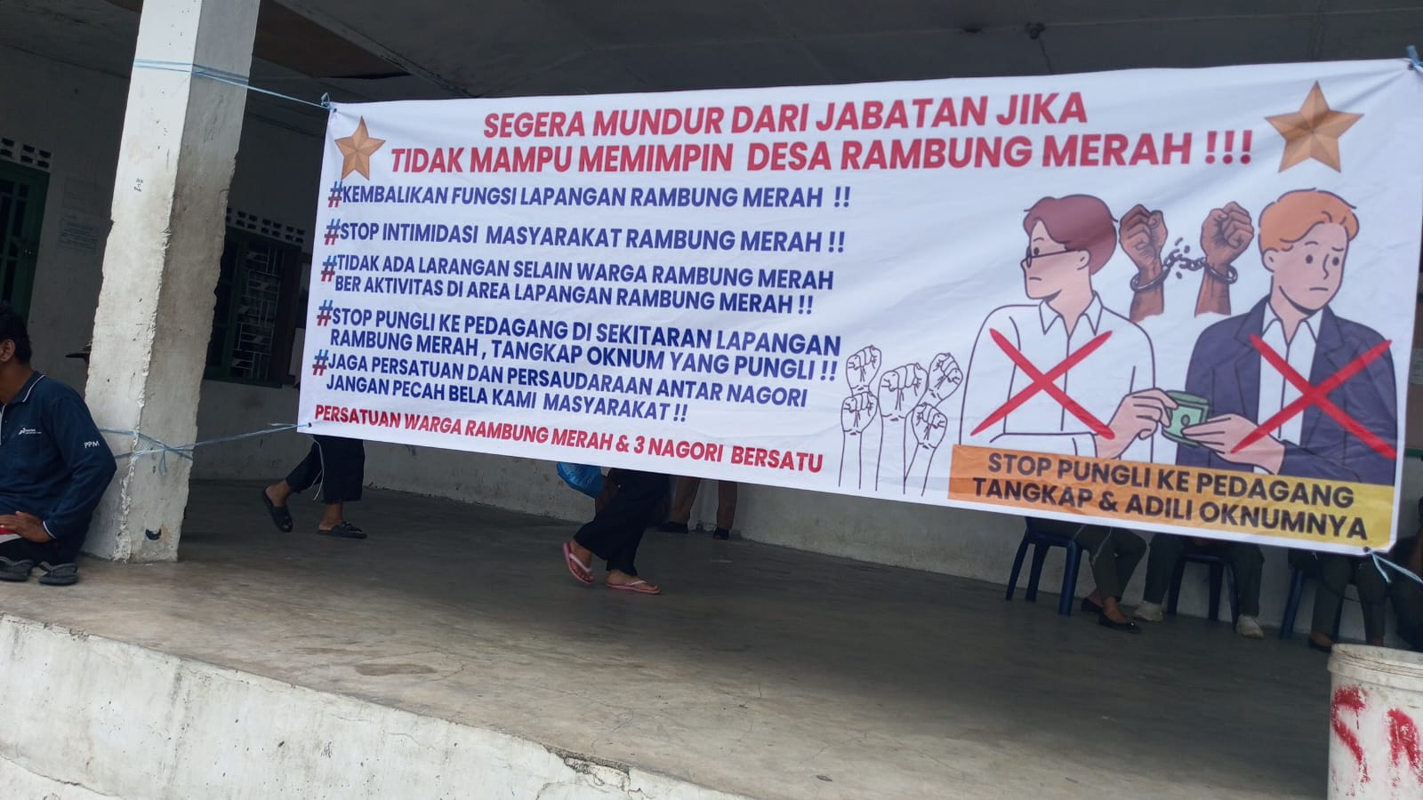 Tuntutan Masyarakat, kepada Pangulu, Segera Mundur Dari Jabatannya nya Jika Tak Mampu Memimpin nya.Kembalikan fungsi tanah lapang kepada semula,stof intimidasi terhadap masyarakat dan pungli kepada pedagang di lingkungan tanah lapang.