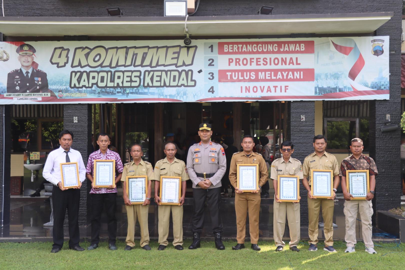 Penghargaan diberikan kepada jajaran Sat Intelkam Polres Kendal atas prestasi dalam melakukan deteksi dini dan mitigasi sehingga berhasil mencegah aksi demonstrasi di DPRD Kabupaten Kendal. Selain itu, penghargaan juga diberikan kepada perwakilan masyarakat yang berperan aktif membantu evakuasi korban kecelakaan air mahasiswa UIN Walisongo Semarang di wilayah Kecamatan Singorojo.