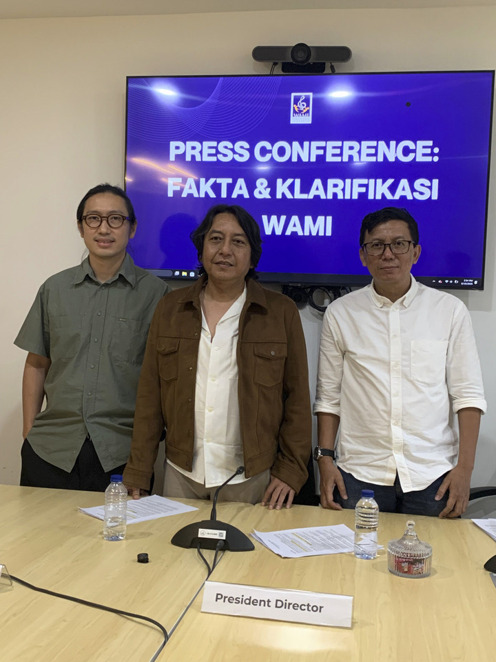 “Ya, sebenarnya tadi saya sudah sampaikan, ya, bahwa kami ini adalah petugas yang diberi kewenangan. Nah, tupoksi kami adalah mengumpulkan,” kata President Director WAMI, Adi Adrian, dalam konferensi pers di Pancoran, Jakarta Selatan, pada Selasa (19/8).